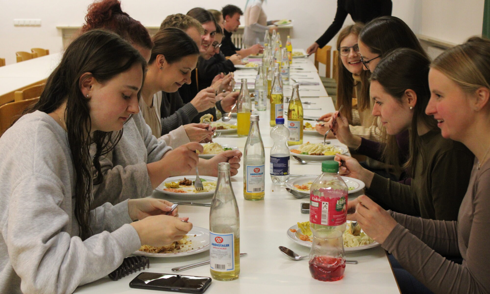 In der Küche des Pfarrheims wurden die selbstgemachten Nudeln gekocht und danach gemeinsam an einer großen Tafel serviert. Das gemeinsame Essen bildete den Höhepunkt des Abends – Raum für Gespräche, Austausch und neue Begegnungen. Für einen besonderen Überraschungsmoment sorgten einige Mutige, die das Familienrezept von Gemeindereferentin Andrea Engl, selbstgemachte Nudeln mit Erdbeermarmelade, kosteten.