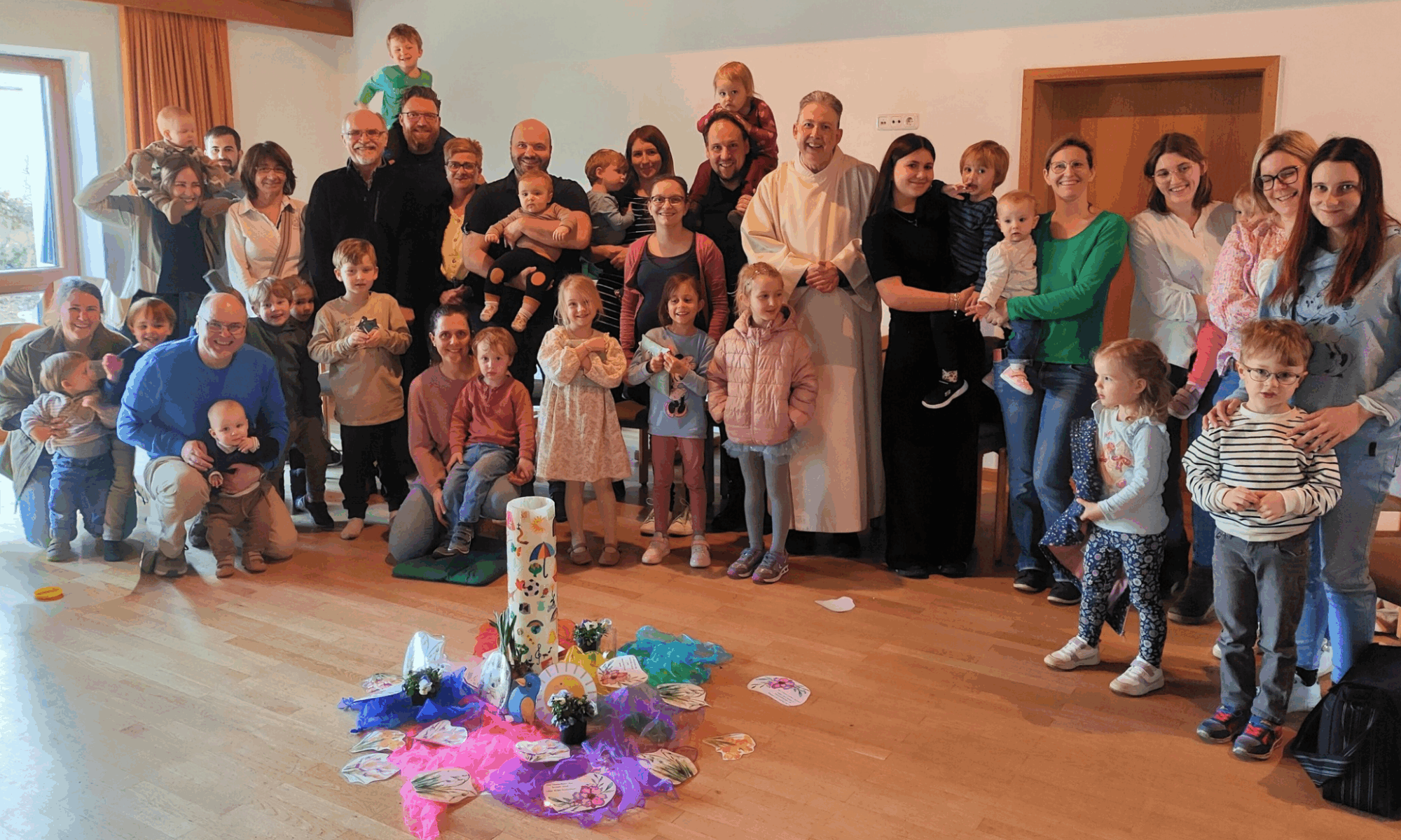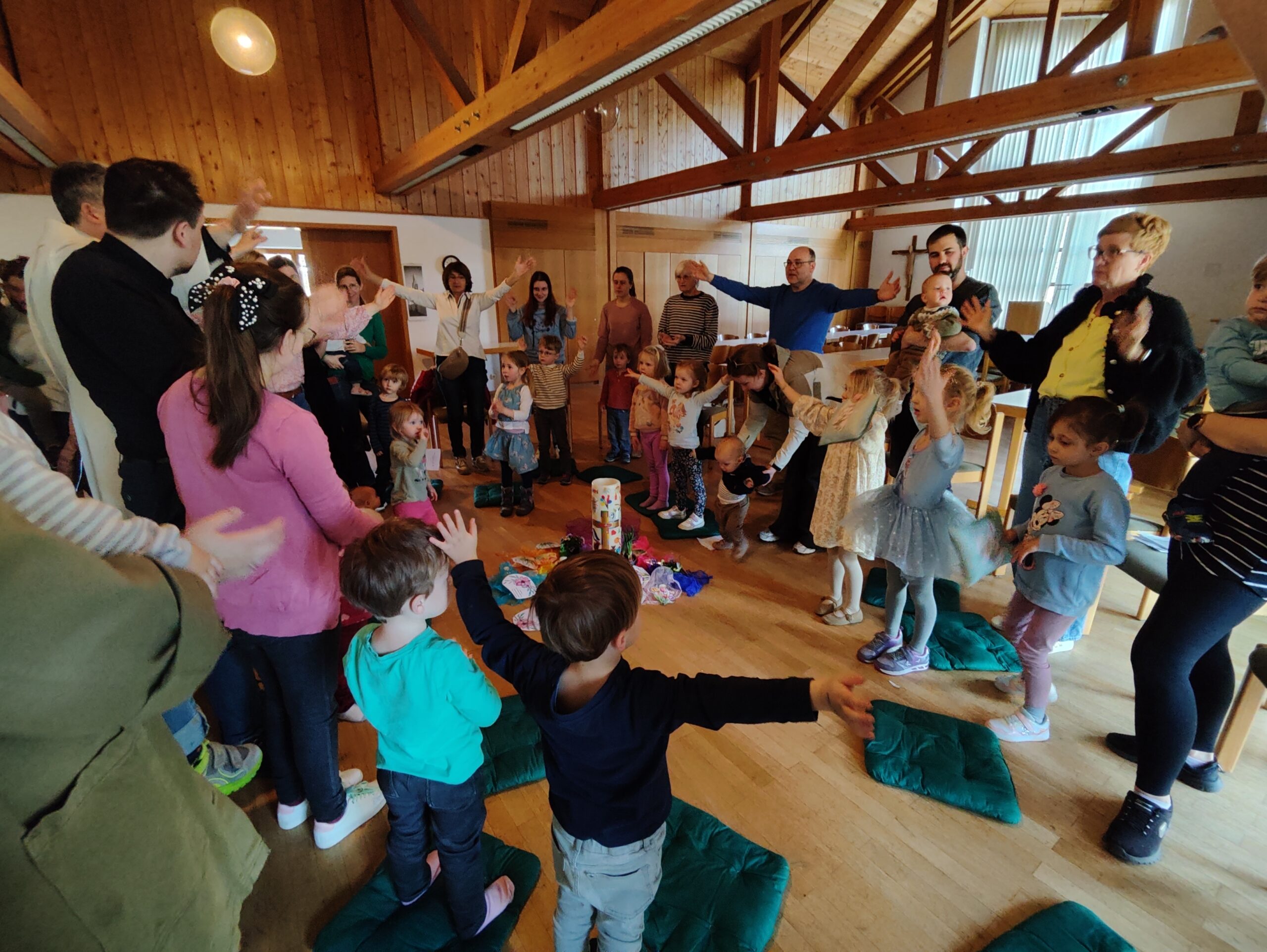 Viele Eltern und Großeltern mit ihren Kindern besuchten den Kleinkinder-Gottesdienst im Pfarrheim Mainburg. Thema der Kinderkirche war der Igel Isi. In einer Geschichte wurde erzählt, wie der Igel Isi aus dem Winterschlaf erwachte und die ersten Boten des Frühlings entdeckte. Die Kinder durften dabei den Igel schnarchen lassen, mit Armen und Händen die Sonne begrüßen, Blumen in die Mitte legen und die Vögel zwitschern lassen. Pastoralreferent Christian Bräuherr erklärte, dass wir Gott danken dürfen für den Frühling und für alles was Gott erschaffen hat. In den Fürbitten wurde für die ganze Schöpfung gebetet. Am Ende des Gottesdienstes ging ein Dankeschön an das Vorbereitungsteam. Pfarrer Florian Zobel wurde mit Applaus für die musikalische Gestaltung des Gottesdienstes gedankt. Als „Mitgebsel“ gab es für alle Kinder „Blumenmurmeln“ Das sind bunte Blumensamen in Murmelform, die man ins Gras werfen und dann gießen soll.